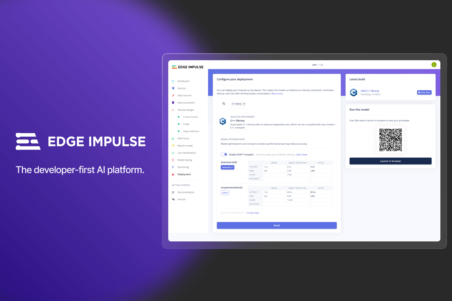 Edge Impulse is the leading development platform for machine learning on edge devices. The AI Platform helps developers build, train and optimize AI models easily.