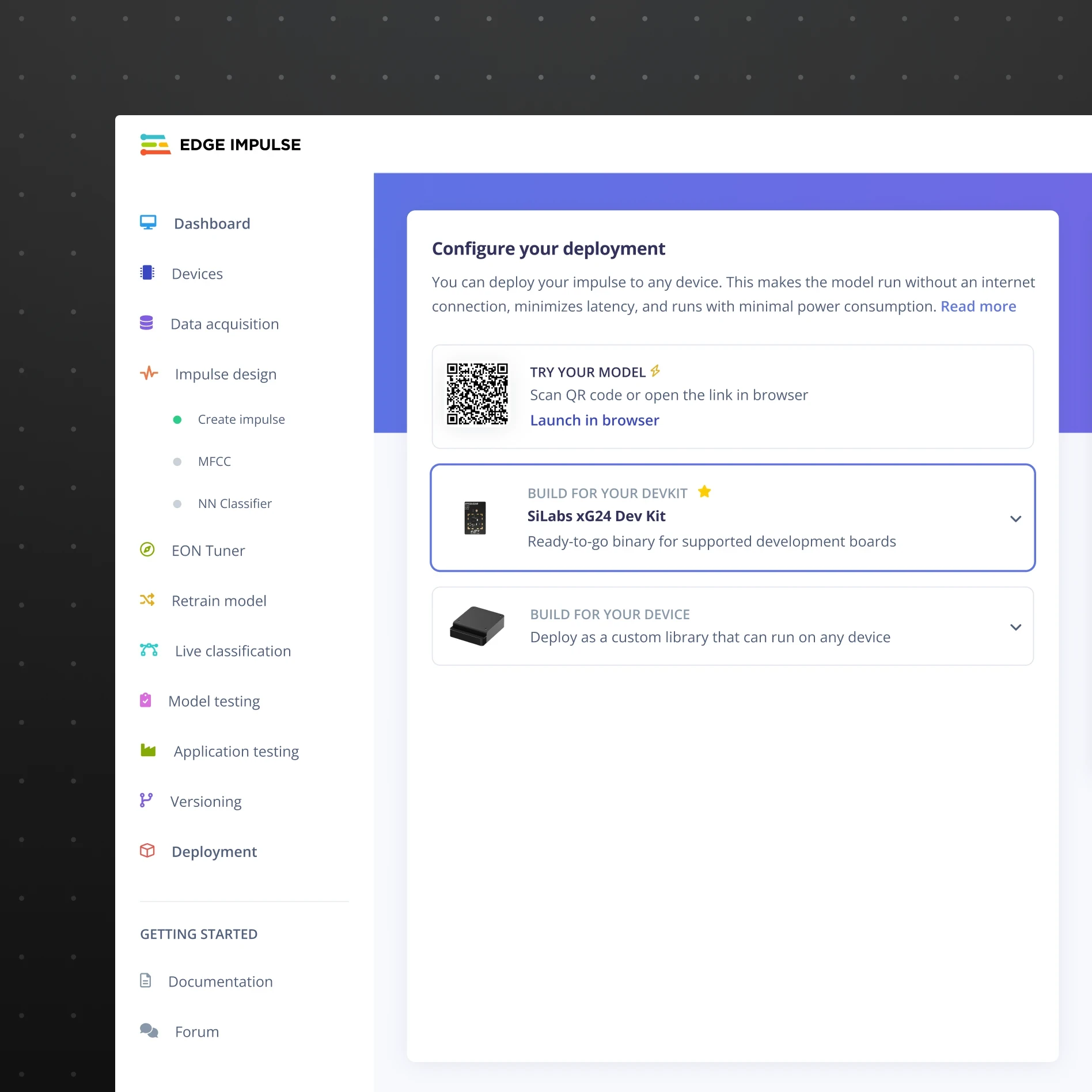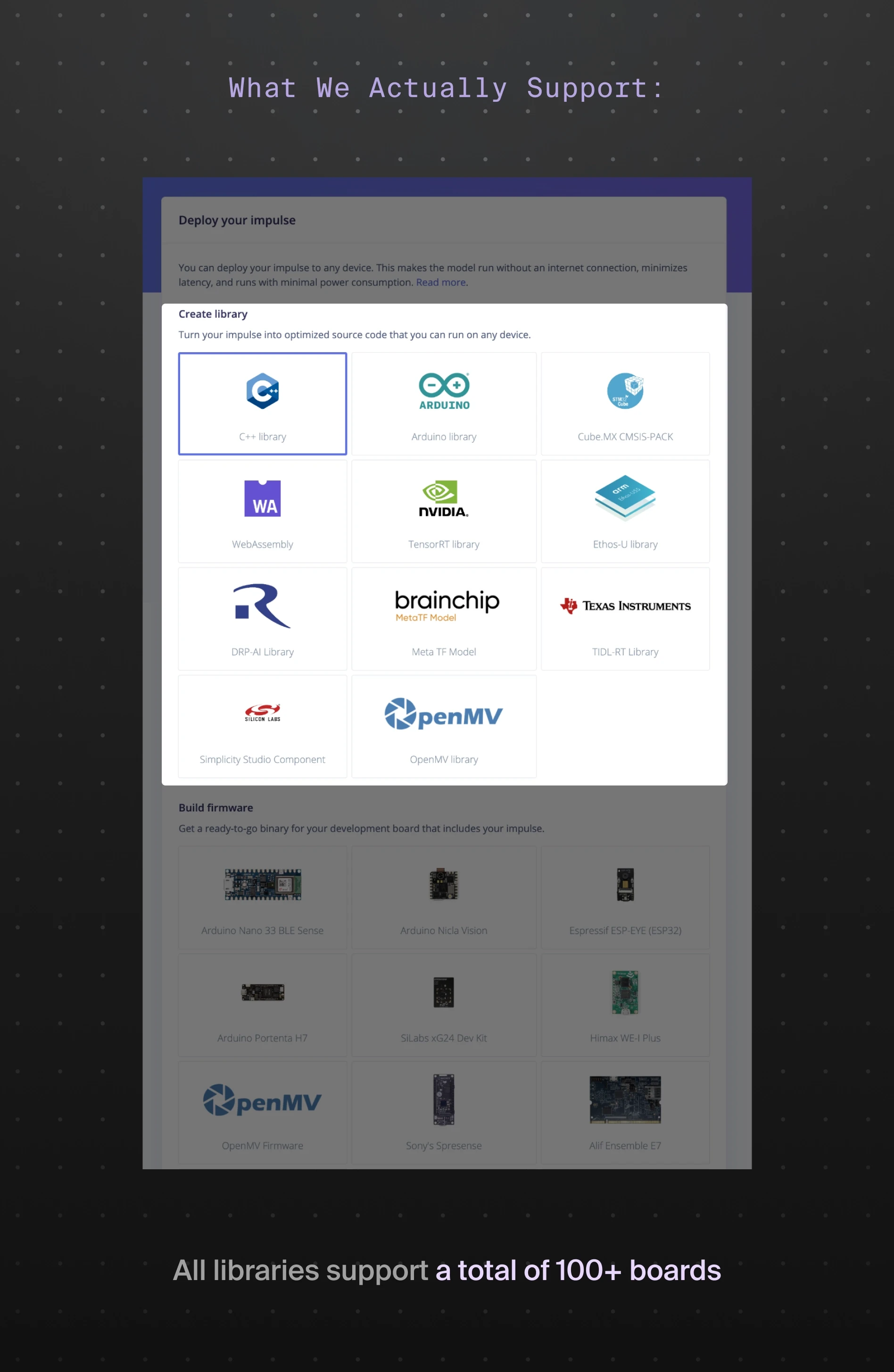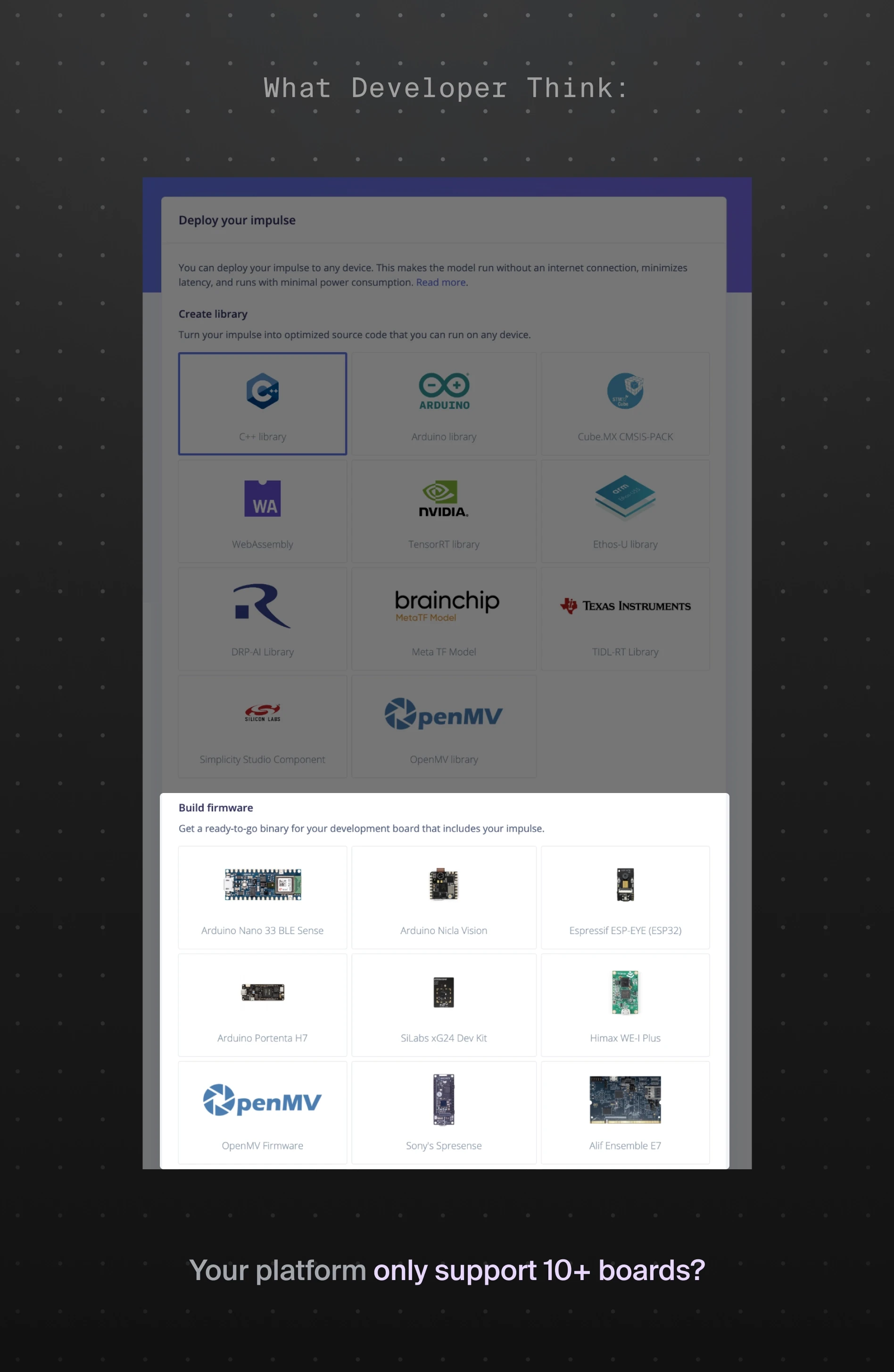 Edge Impulse supports dozens of hardware boards and deployment formats. However, the interface exposed these options in a way that made them easy to overlook. Many developers assumed their board wasn’t supported and left the platform before deploying their models.