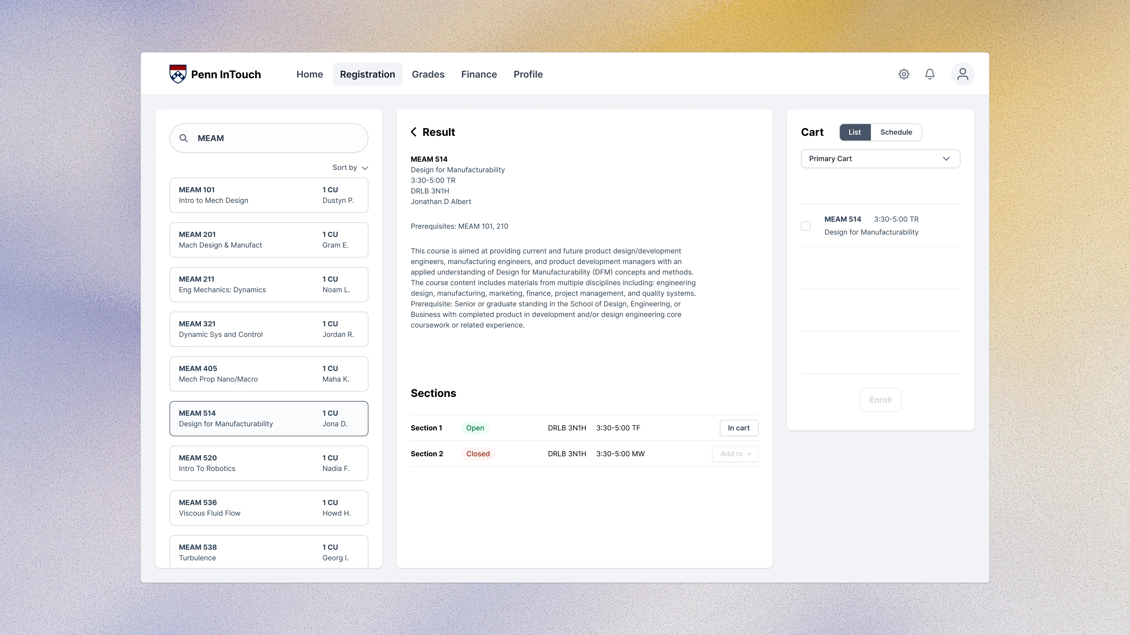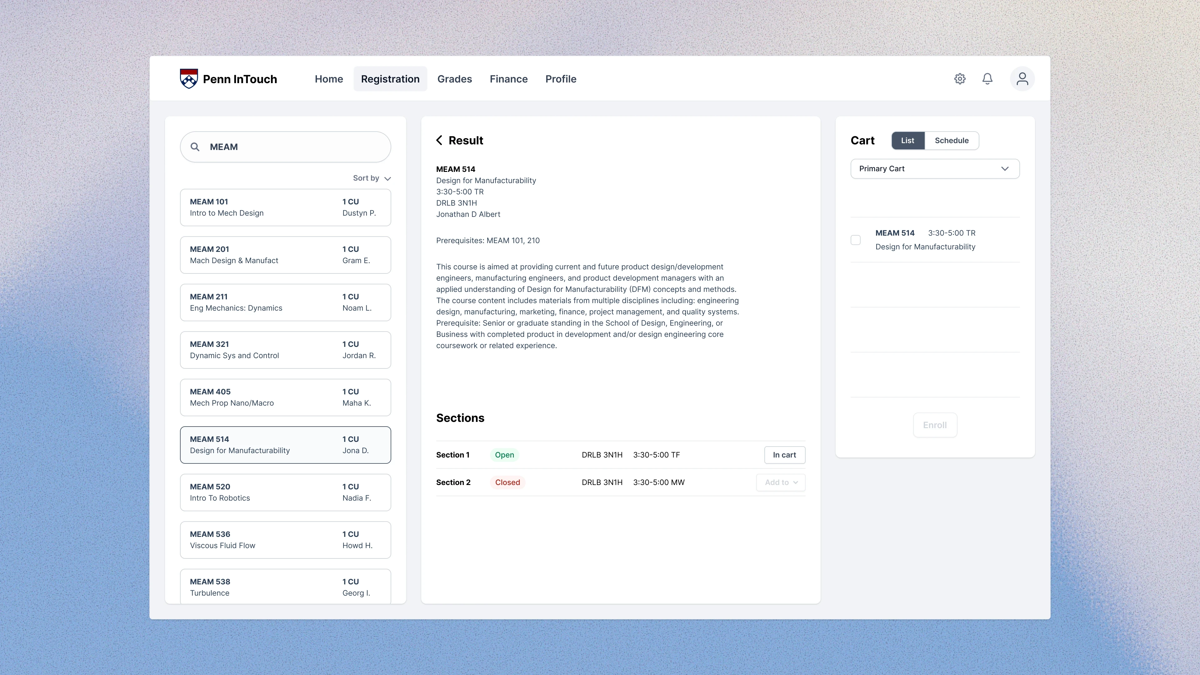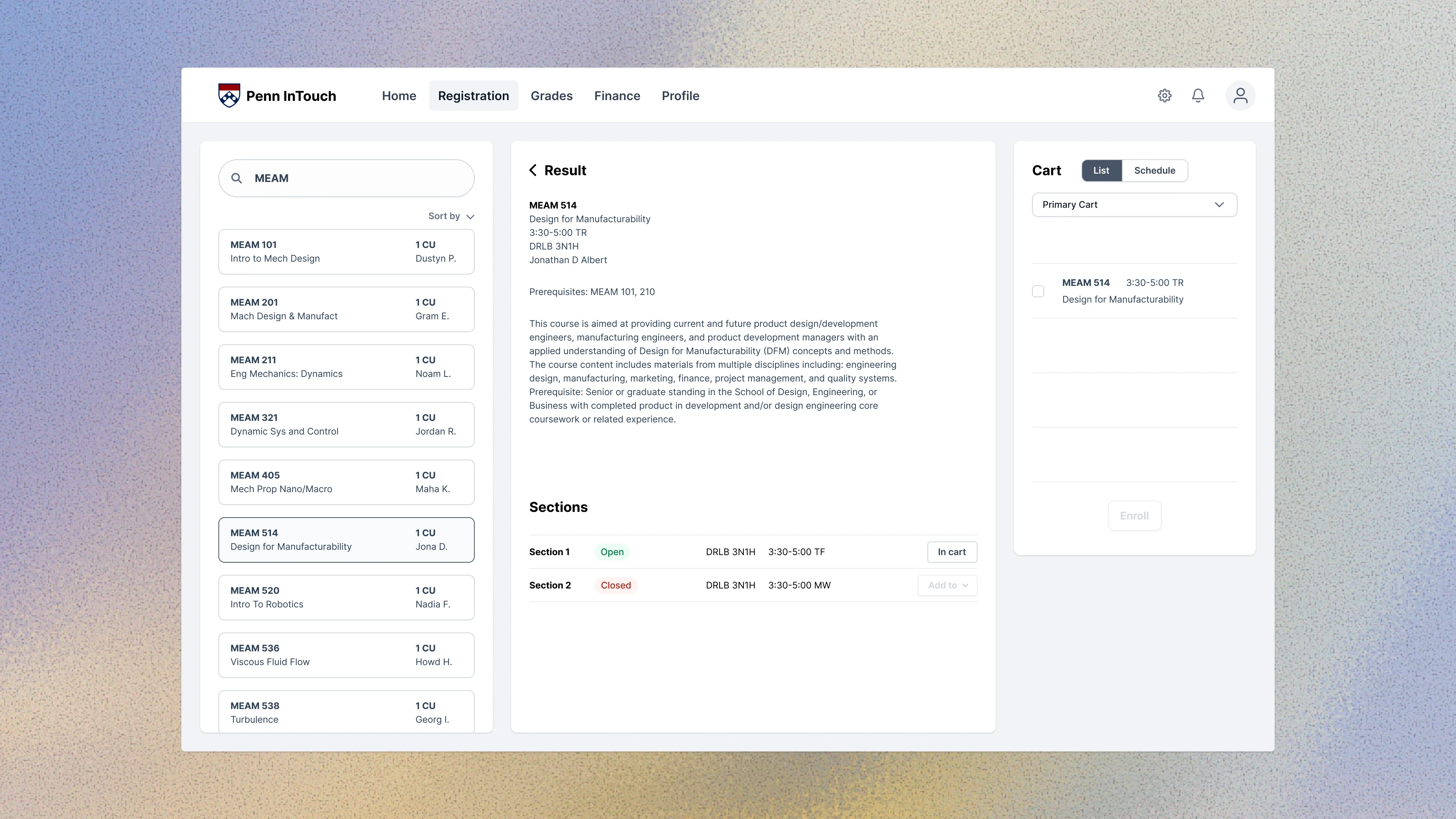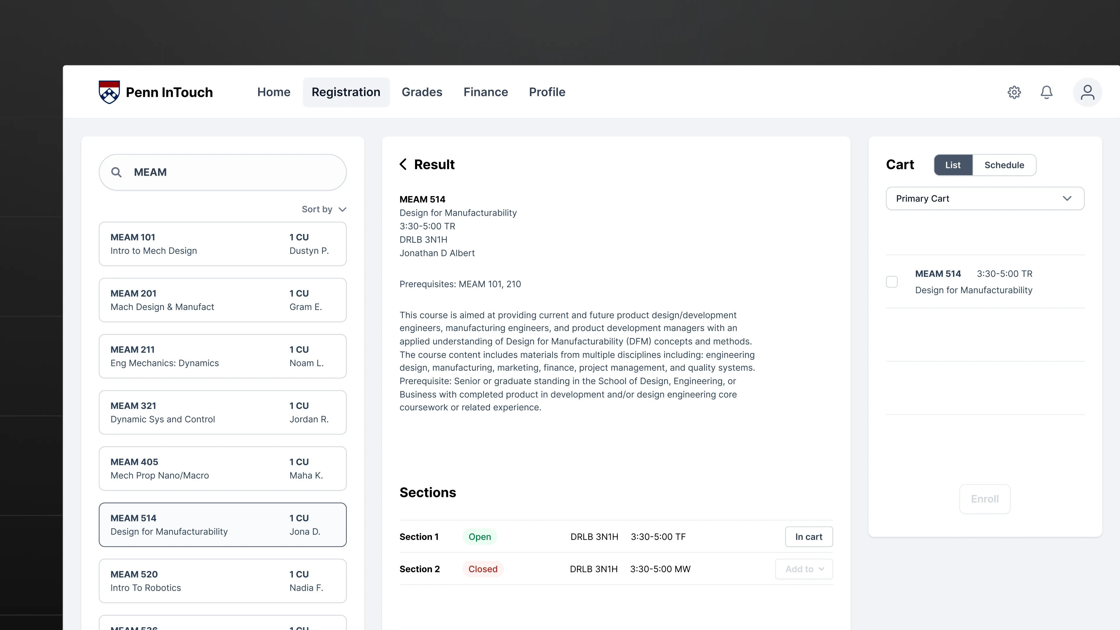 A redesign of Penn InTouch that simplifies course planning and enrollment into a single streamlined workflow.