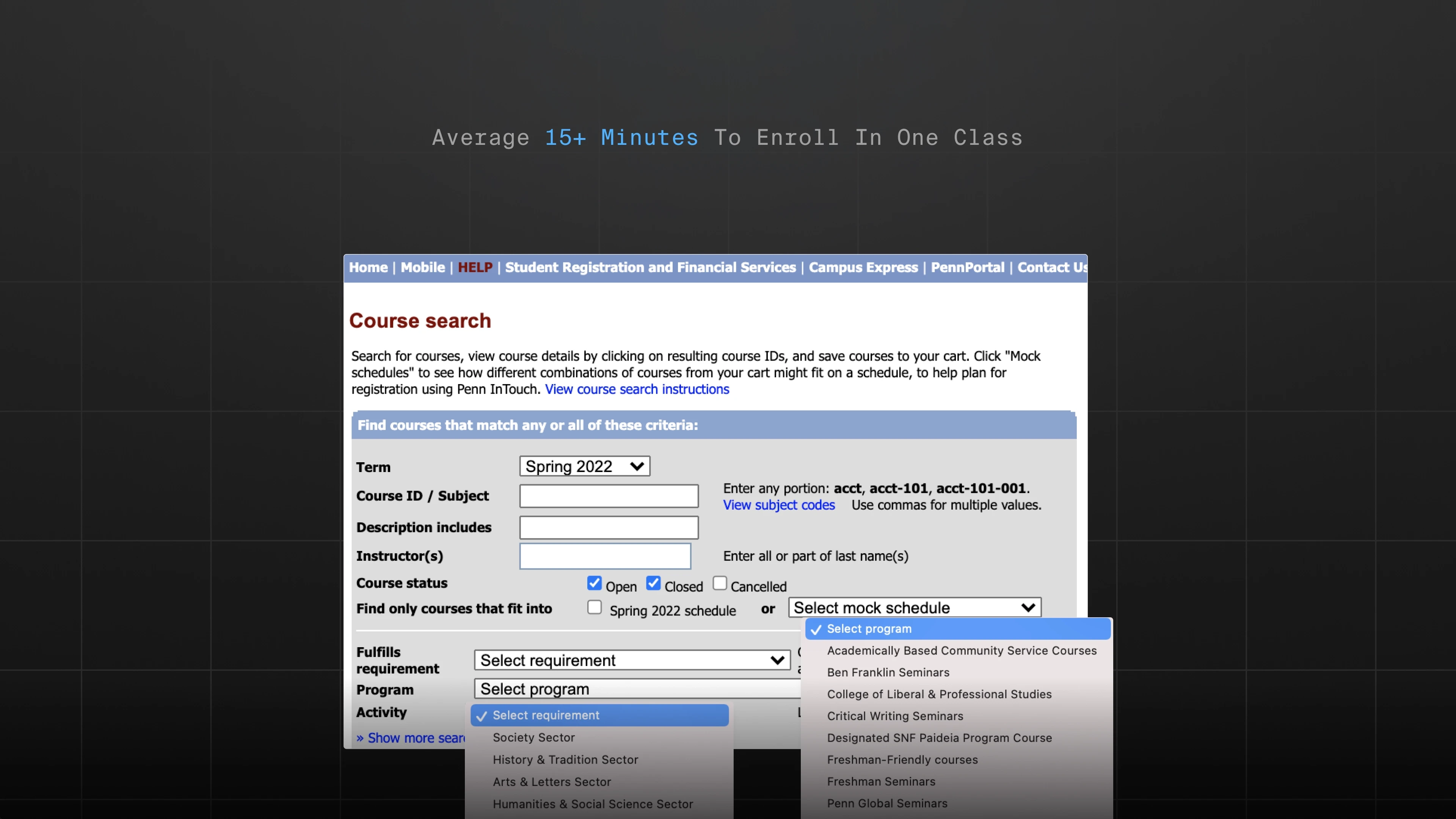 Students spent 15 minutes registering for a single class